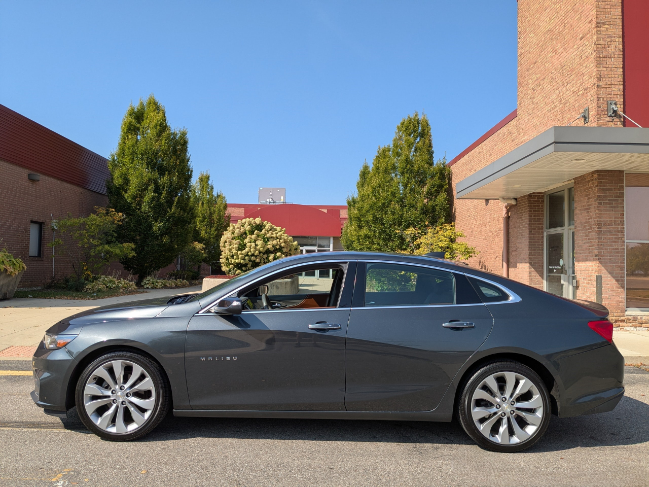 Jeff Benson Car Company is your Malibu headquarters! This is one of four we currently have for you, but it's the only one in this absolutely striking combination of Cyber Gray Metallic over Terra Cotta leather! As the absolute top of the line, the Premier is powered by the great 2.0T 4 cylinder, and comes with heated and cooled front seats, remote start, panoramic sunroof, Apple CarPlay, and Android Auto. All maintenance is up to date, with a professional 55 point inspection being key to our process. Scroll through the photos to see our complete selection of Malibus, and then be sure to call or text me at 734-707-1971!